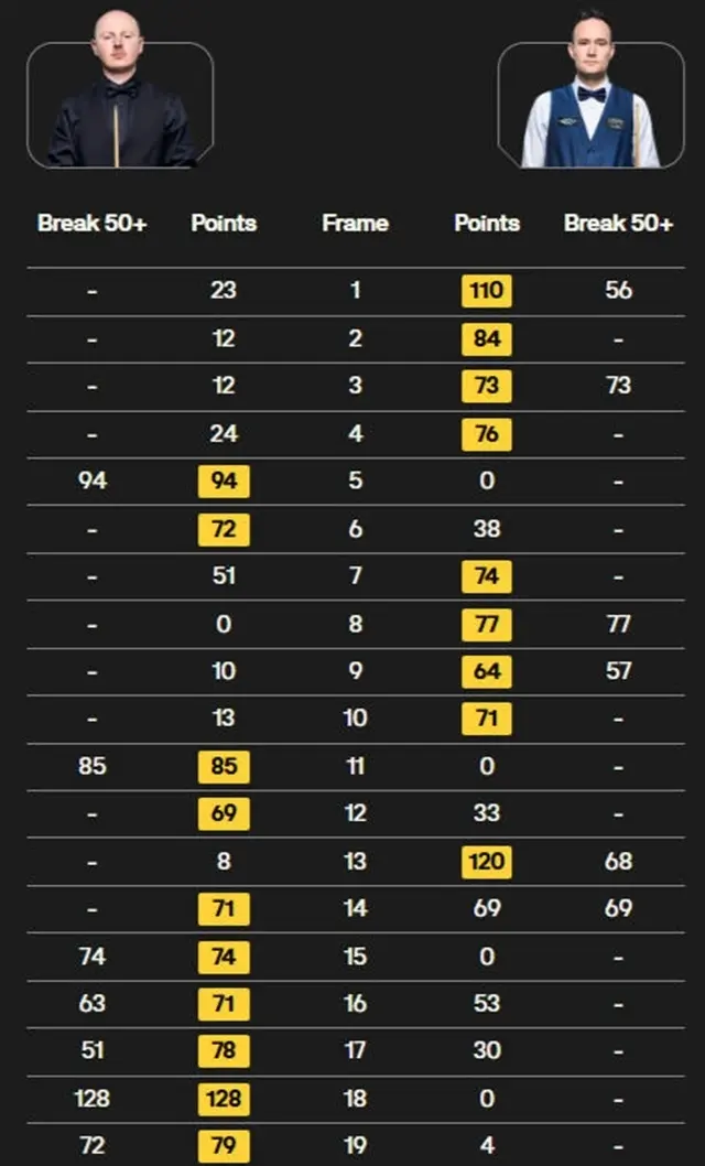 第一阶段,安东尼·麦克吉尔状态低迷,各种失误不断,开场后就连输四局0-4挖坑,虽然随后连扳两局追到了2-4,但是之后又连输了三局,以2-7大幅落后。